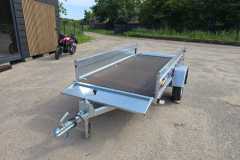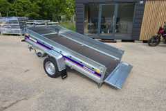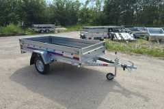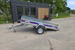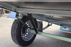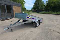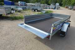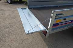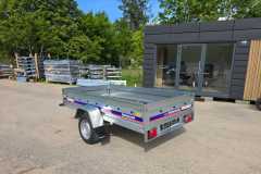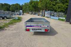 Przyczepa Niewiadów BEG7527YU jest wyposażona w: koło podporowe, podłogę ze sklejki antypoślizgowej, burty boczne demontowalne, uchylną skrzynię ładunkową, uchwyty podłogowe, resory i amortyzatory, błotniki stalowe chlapacze z grafiką z logo Niewiadów.