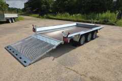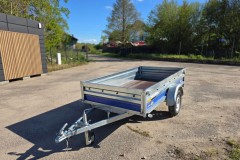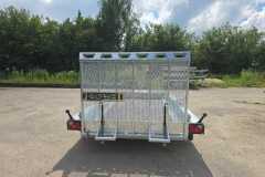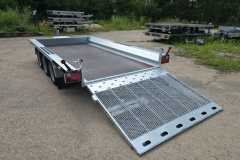 Solidna spawana przyczepa do przewozu maszyn budowlanych oraz bardzo ciężkich materiałów. Oryginalna konstrukcja daje możliwość chodzenia po całej długości burt wyposażonych w taśmy antypoślizgowe. Rama nośna spawana wykonana ze stalowych profili zamkniętych. Podłoga wykonana ze sklejki wodoodpornej antypoślizgowej zaopatrzona w solildne uchwyty podłogowe do mocowania ładunku zapewniające bezpieczeństwo przewożonych towarów. Bardzo wytrzymały dyszel typu V i podpory stabilizujące najazd. Podpora łyżki oraz koło podporowe z automatem składania w standardzie. Sprężyny ułatwiające opuszczanie i podnoszenie najazdu. Możliwość zastąpienia szerokiej rampy najazdowej dwoma najazdami redukując tym samym masę przyczepy, a co za tym idzie zwiększając jej ładowność.