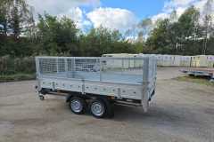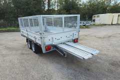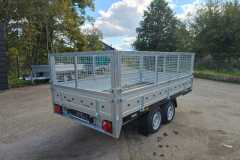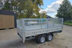 Przyczepa z burtami Alu oraz nadstawkami. Przyczepa wyposażona w najazdy mocowane pod podłogą.